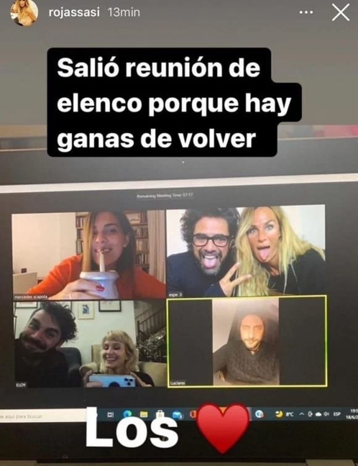 “Salió reunión de elenco porque hay ganas de volver”, expresó Sabrina en sus redes sociales al compartir la captura de pantalla de la video llamada y volviendo a encender los rumores de reconciliación.
