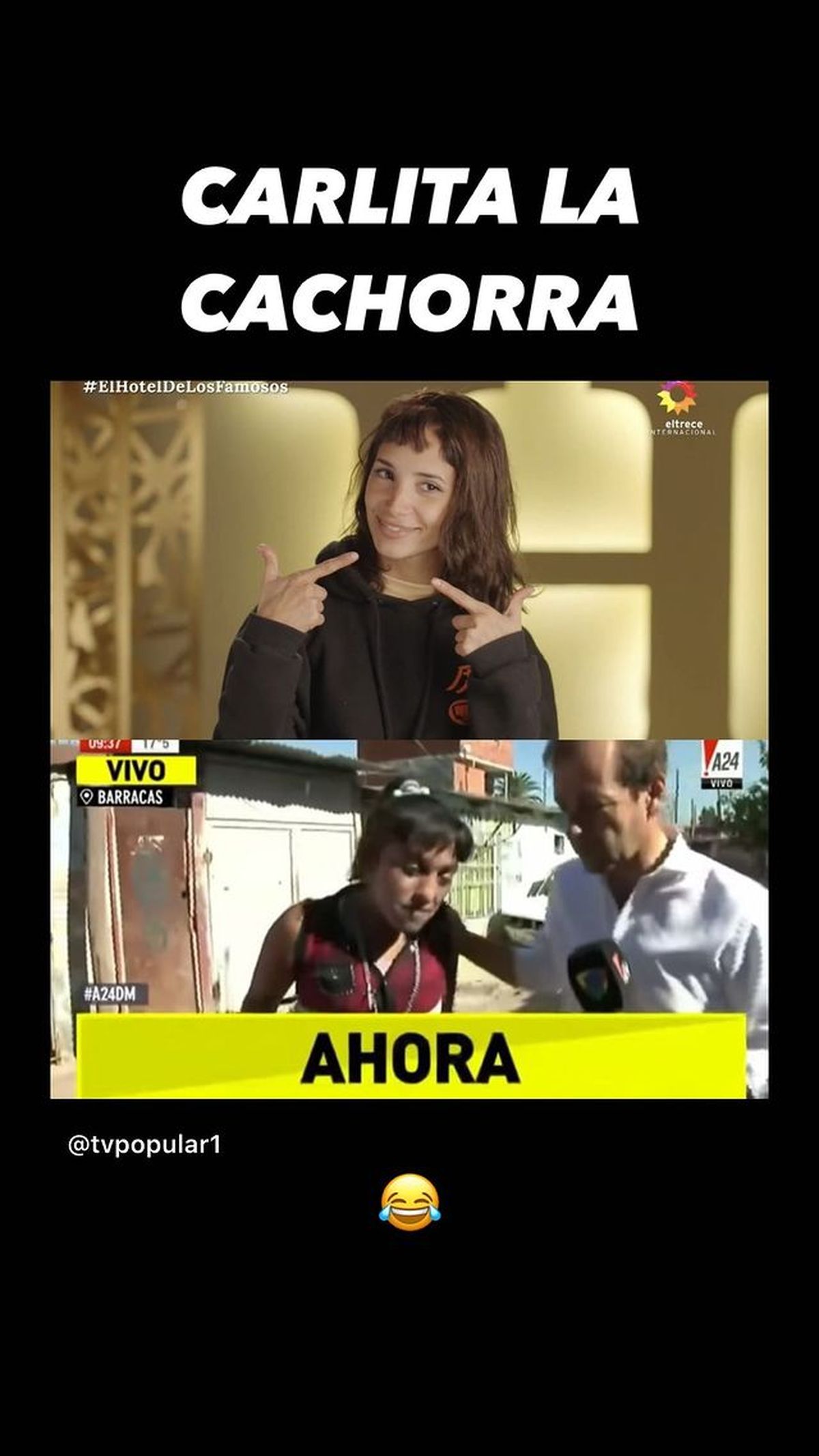 Fue la misma Melody Luz quien compartió una de las fotos virales en donde los fans compararon su look. "Carlita la cachorra" escribió la novia de Alex divertida.