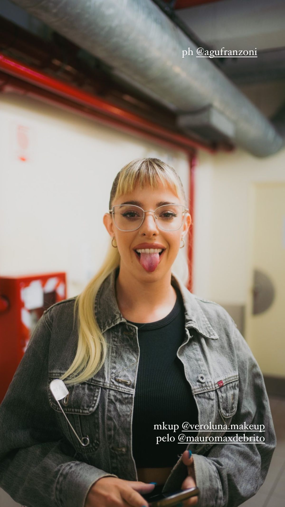Fue la misma Nati Jota quien subió fotos antes de salir a escena. La diosa eligió un conjunto de short de jean súper cortito, crop top negro y campera de jean.