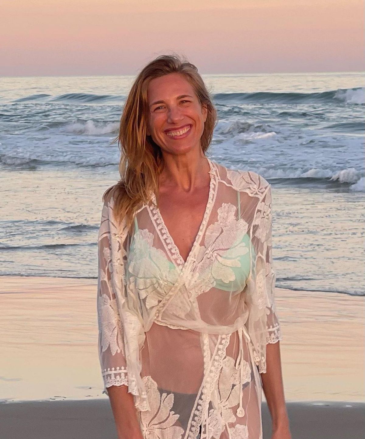 Allí, Alina Moine volvió a deslumbrar con su lomazo y compartió postales donde se mostró con un vestido de encaje con transparencias con traje de baño debajo que enloqueció a sus fans.