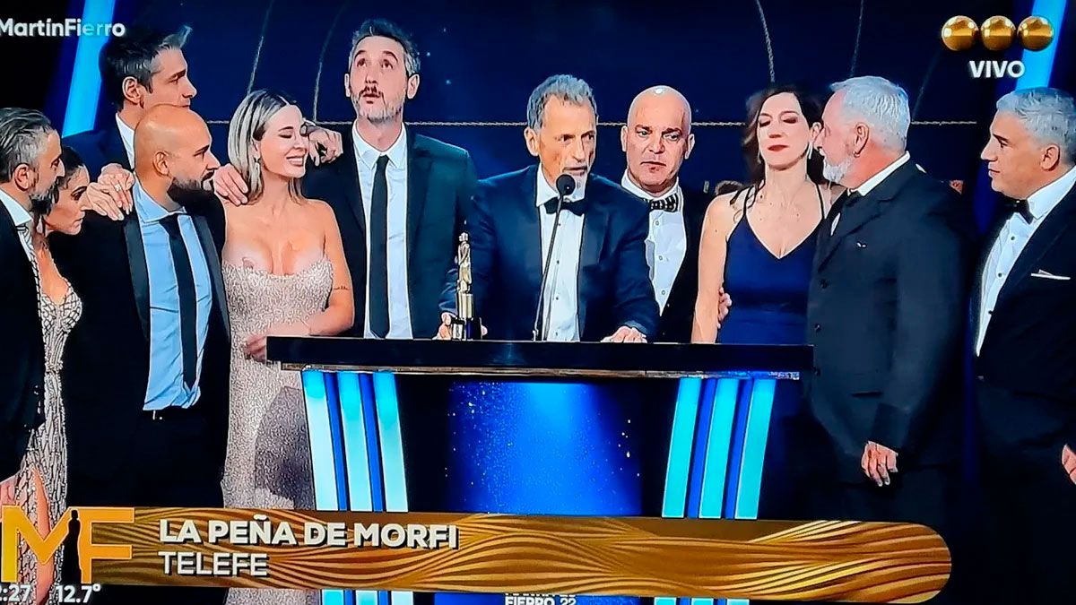 El diseño strapless súper ajustado, dejaba a la vista su prominente escote lo que le jugó una mala pasada ya que en el momento en el que estaba subiendo a recibir el premio a La Peña de Morfi, una de sus lolas quedó al descubierto.