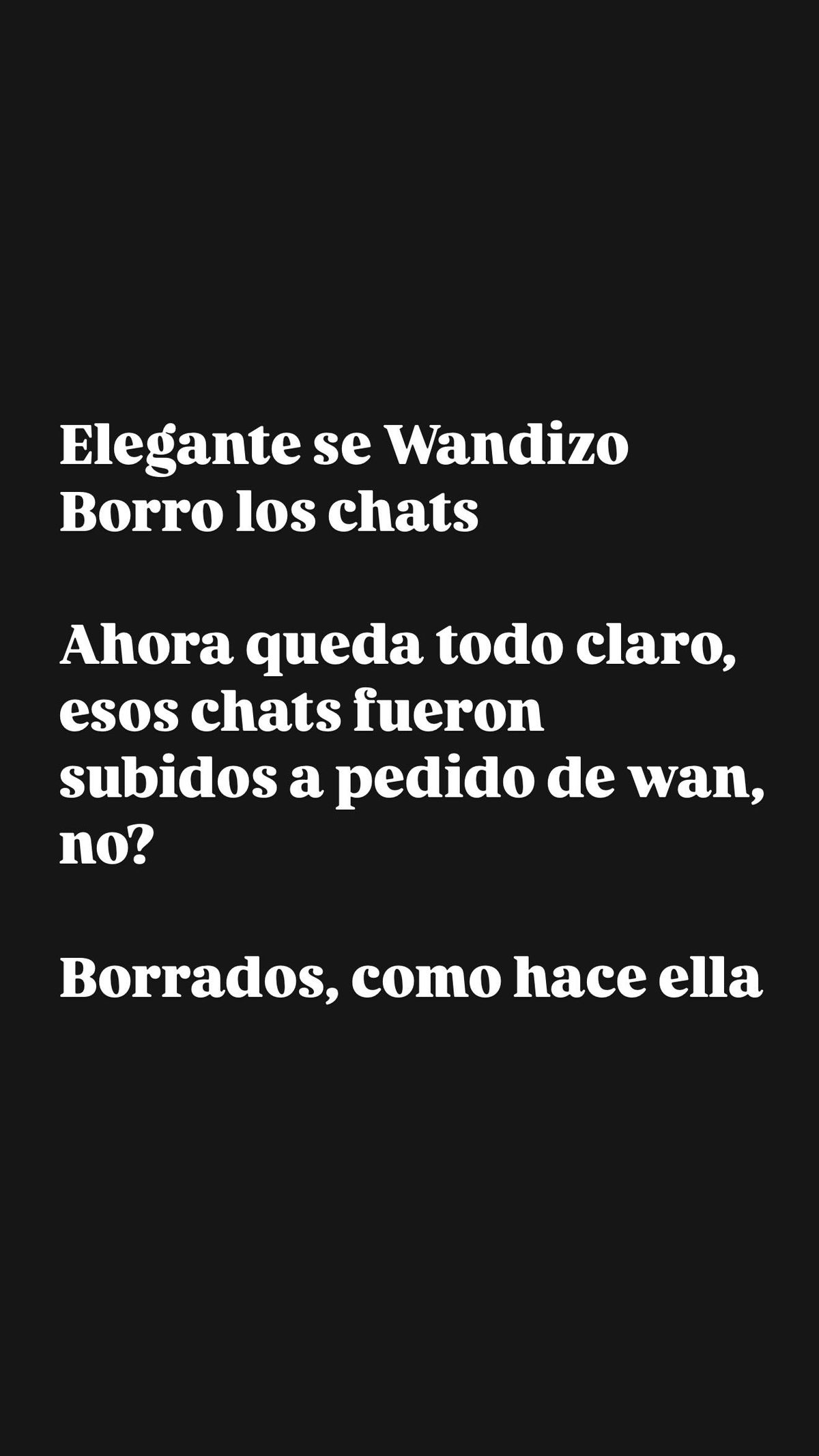 "L-Gante se Wandizo. Borro los chats... Ahora queda todo claro, estos chats fueron subidos a pedido de Wan,no?", arrancó Yanina. "Borrados como hace ella".