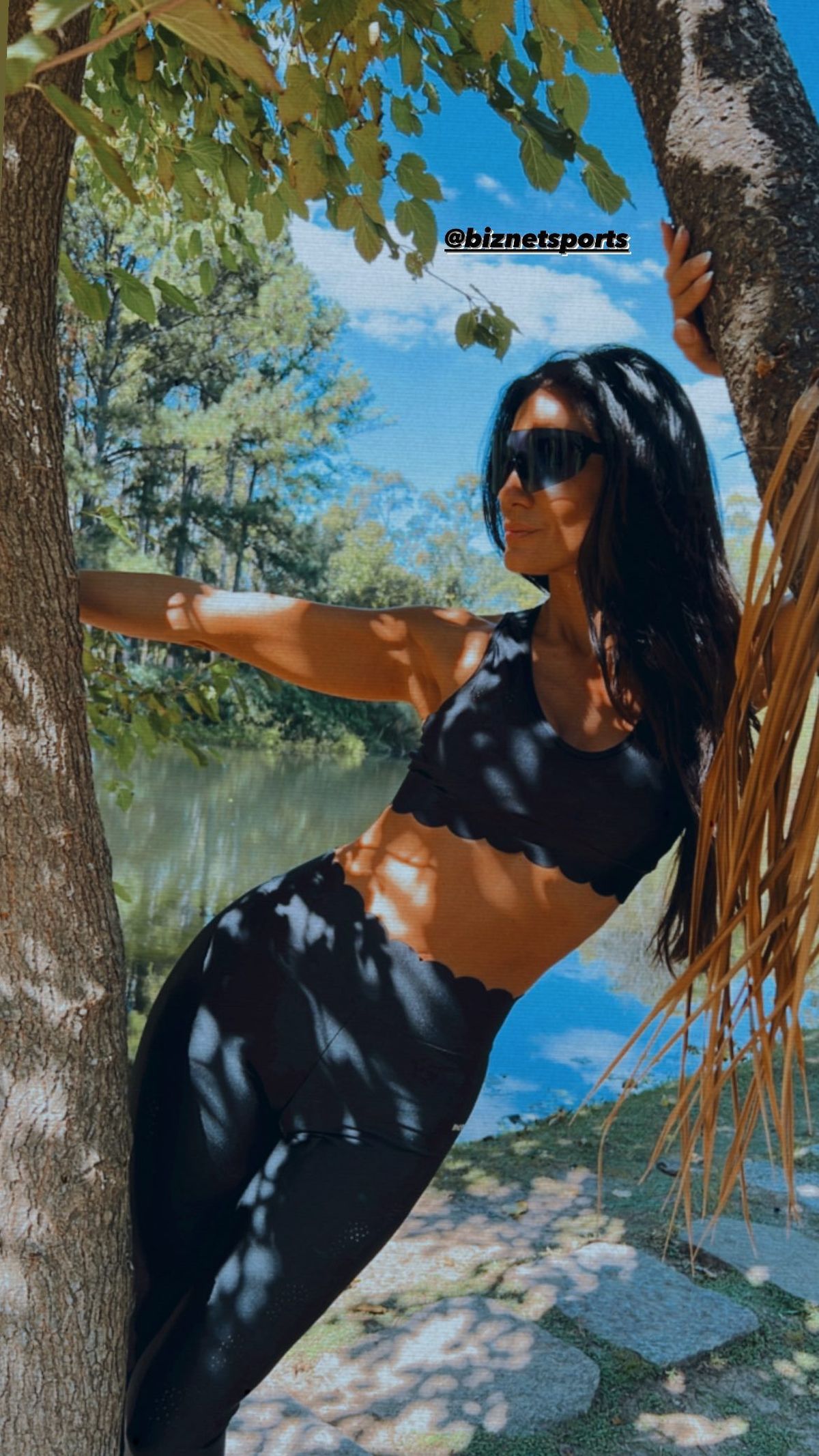 Luciendo dos diseños diferentes y posando entre los árboles, Silvina eligió dos modelos súper ajustados marcando su tonificada figura a la perfección.