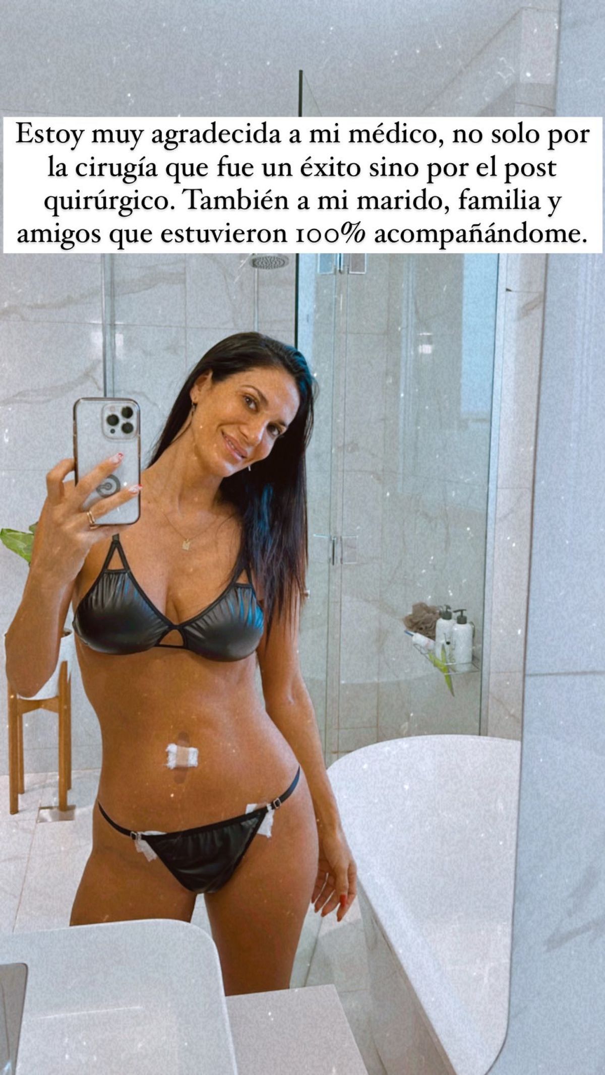 "Estoy muy agradecdida a mi médico, también a mi marido, familia y amigos que estuvieron 100% acompañándome", siguió Silvina Escudero feliz con el post quirúrgico..
