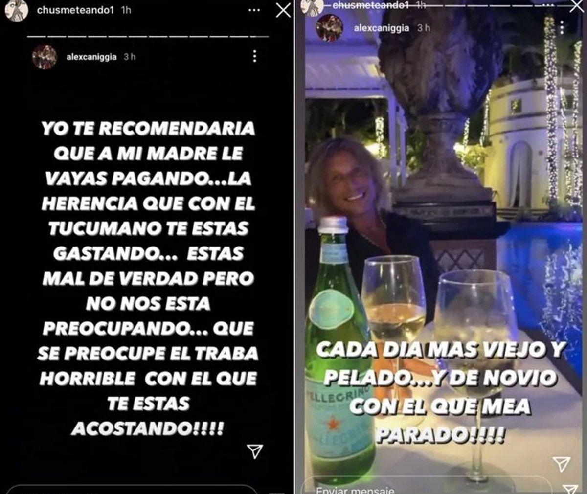 Alex Caniggia fue muy duro con su papá Claudio Paul Caniggia, justo en el momento en que su mamá Mariana Nannis anunció que pedirá su detención por violencia y abuso sexual. Sofía Bonelli, pareja del ex delantero de la Selección argentina, saltó para defenderlo en las redes.