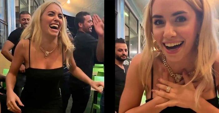 En plena comida, los asistentes del show y el equipo decidió que la homenajearan y la levantaran sentada en una silla, Lali accedió con pánico hasta que la subieron y no se la vio muy cómoda.
