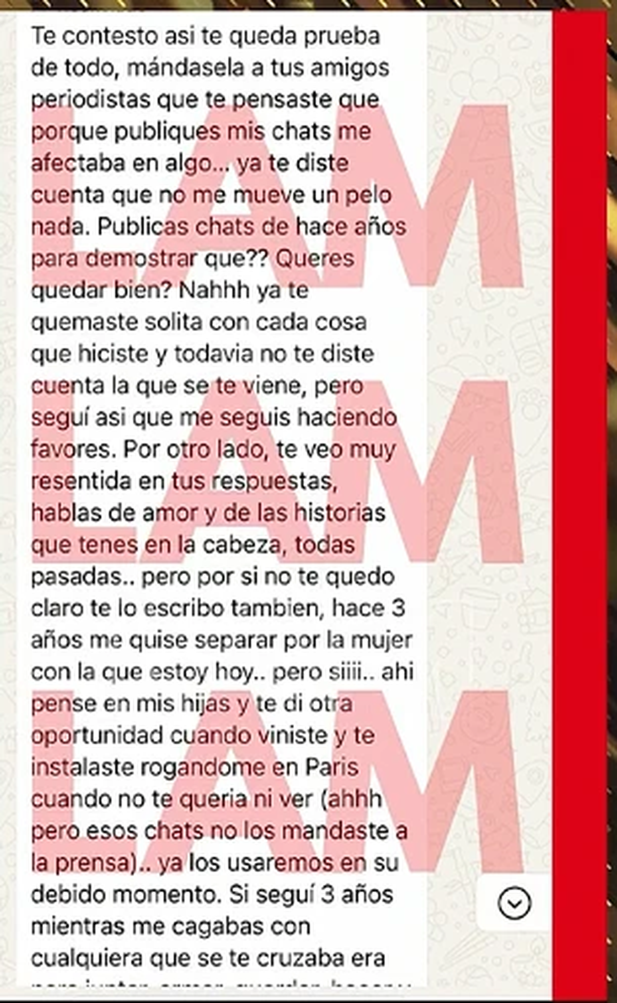 "Ojalá que Elián se cope y te mande todo lo que tiene de tu ‘amor’ para que veas que todos la tuvieron regalada e hicieron como vos, no le dieron bola. Y los que le dieron bola años después se quisieron matar, dicho por ellos”, cerró picante.