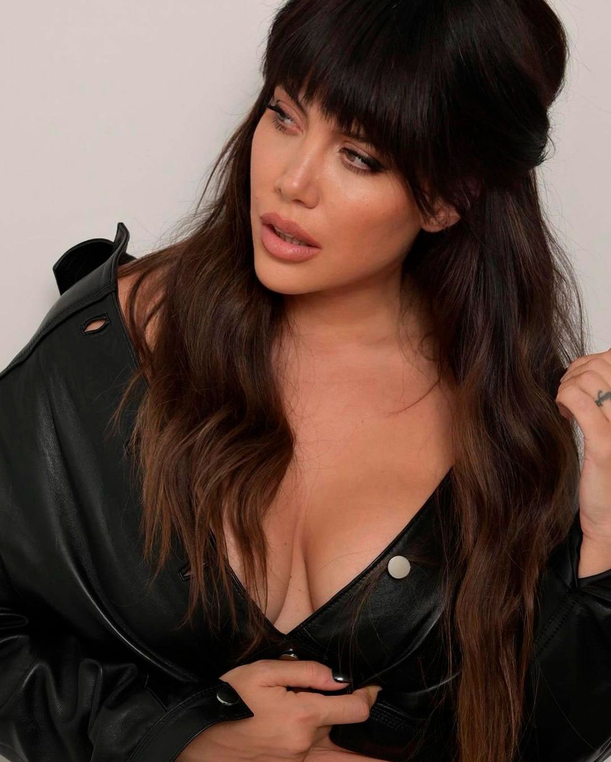 La ahora morocha lució un prominente escote en uno de sus últimos posteos de Instagram y la compararon con Moria Casán, por el color negro de su cabello.