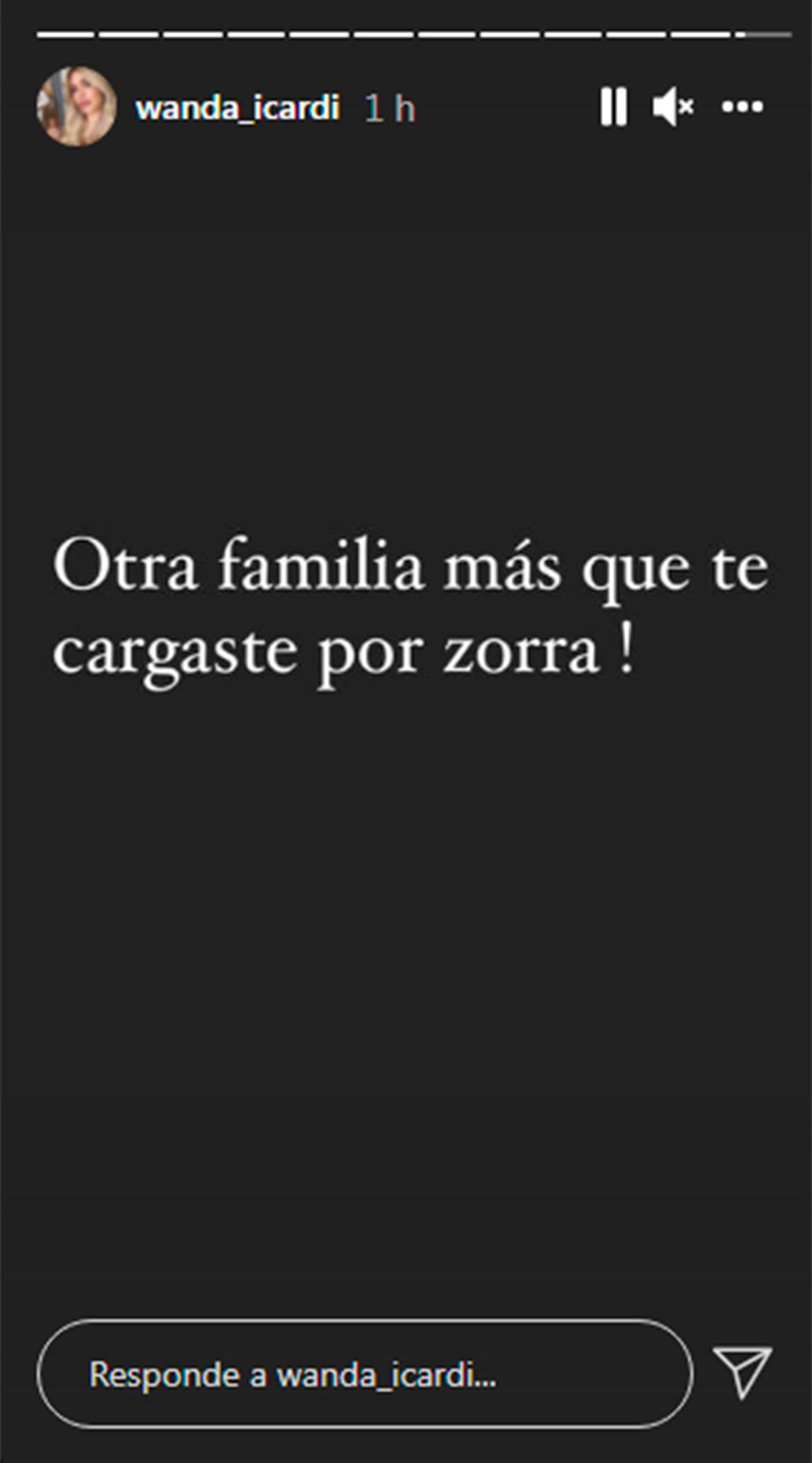 Wanda Nara metió un enigmático posteo en sus historias de Instagram: "Otra familia más que te cargaste por zorra" y despertó los más severos rumores de crisis con su pareja, el futbolista Mauro Icardi. La publicación se hizo este sábado y el rebote mediático crece con los minutos.