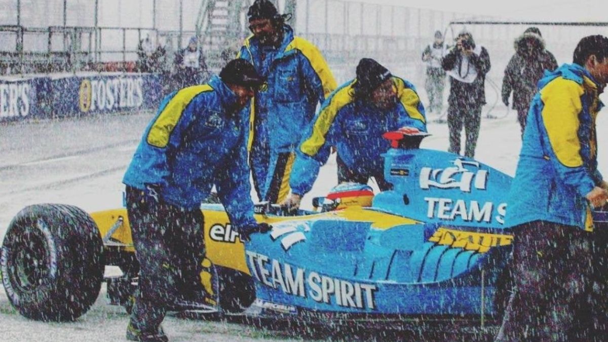 En Silverstone, un circuito que suele tener un clima bastante caprichoso, las nevadas durante las pruebas no son tan raras. En 2001, Renault tuvo que lidiar con una de esas tormentas que cortaron su sesión de pruebas, y en 2005, una situación similar complicó los planes de la escudería.
