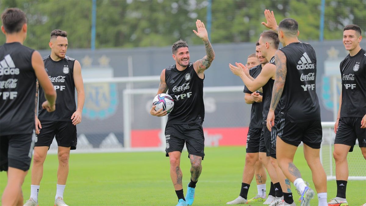 Desde las 11 y a puertas abiertas para la prensa, el plantel conducido por Lionel Scaloni comenzó la tercera y última práctica antes de partir a Chile.