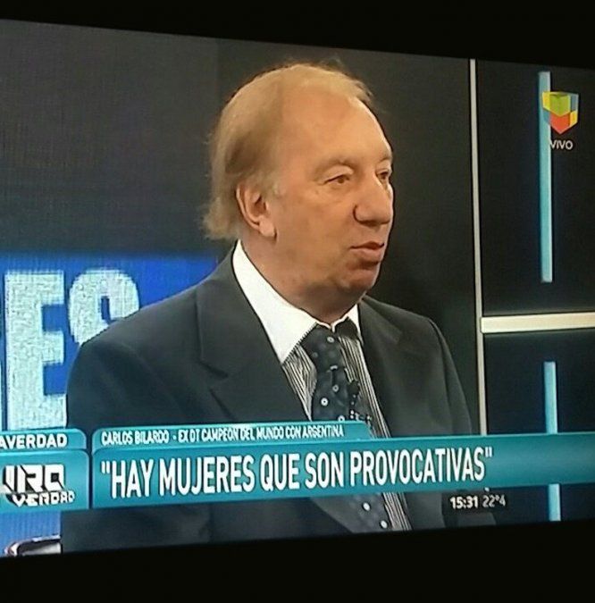 Bilardo fue invitado al programa televisivo de Mauro Viale, por América, y cuando opinó sobre la violencia de género expuso un modo de pensar cuanto menos polémico. "La mujer no puede ir como quiera. En la playa sí, pero en la calle no puede ir como quiera", señaló en la entrevista. Si bien aclaró que está en contra de la violación, sostuvo que "hay mujeres que visten bien y hay mujeres que son provocativas", y luego de que Viale argumentara que la mujer "podía vestirse como quisiera", el entrenador respondió: "No se puede, incitan a la violencia".