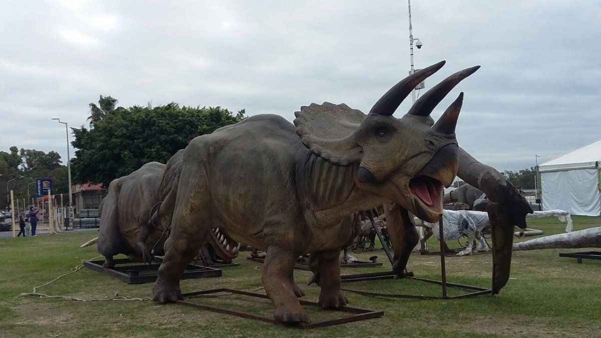 Comenzaron a colocar los dinosaurios de Tecnópolis en Paraná y se armó un gran revuelo en la zona baja de la Costanera.