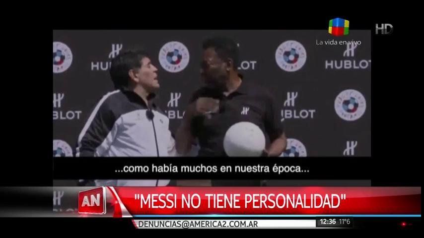 Diego Armando Maradona le confió al brasileño Pelé que Lionel Messi, a quien dirigió en el seleccionado argentino, "es buena persona" pero "no tiene personalidad para ser líder".Esta opinión del astro argentino se filtró durante un evento que realizaba junto a Pelé en París, Francia, como previa a la Eurocopa que comenzará este viernes.