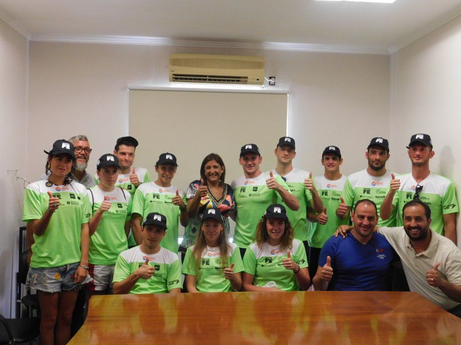 La intendenta de la ciudad de Santo Tomé, Daniela Qüesta, recibió esta mañana en su despacho a un grupo importante de nadadores, que fueron protagonistas de la Santa Fe-Coronda 2018.