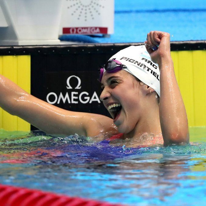 Pignatiello cronometró 4m.19s.32/100 y fue escoltada por su compatriota Delfina Dini, que marcó 4m.23s.72/100. Ambas, junto a Mayra Arce y Julieta Lema, ganaron luego la posta 4x100 metros libre, con un tiempo de 4m.0s.63/100.
