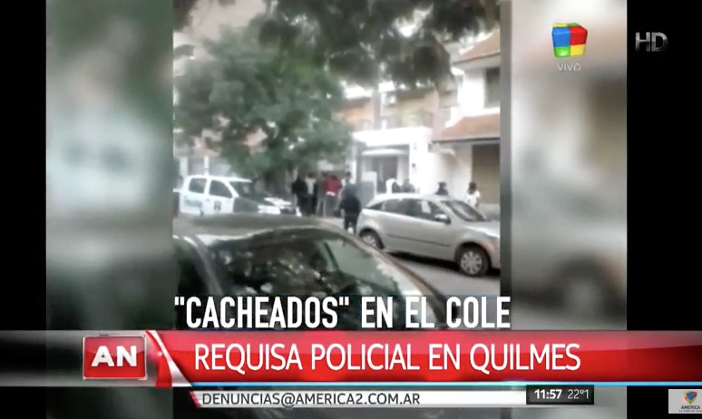El UPD se ha convertido en una clásico de los últimos años. Los alumnos de los colegios porteños y bonaerenses festejan así el último primer día de clases. En el marco de esta celebración se produjo un hecho tan polémico como alarmante, cuando efectivos de la policía de Quilmes fueron con cinco patrulleros hasta el colegio Sagrado Corazón donde los adolescentes estaban festejando. Según denunciaron los padres, y tal como se ve en el video, los uniformados ordenaron a los jóvenes colocarse contra la pared para requisarlos. El insólito accionar responde a los llamados de vecinos y comerciantes que se alarmaron por la presencia de estudiantes bulliciosos, pero que no habían provocado ningún desmán en la vía pública. La actitud de los policías hizo recordar a una etapa nefasta de la historia argentina, cuando este tipo de requisas eran frecuentes durante la última Dictadura militar.