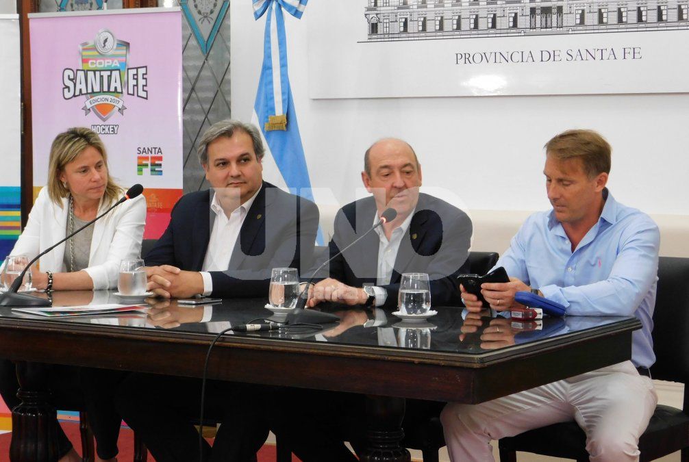 En el salón Blanco de Casa de Gobierno se presentó la primera edición de la copa Santa Fe Hockey. La reunión con la prensa se llevó a cabo en el salón Blanco, colmado por chicas de los clubes de diferentes puntos de la provincia; y fue encabezado por el ministro de gobierno, Pablo Farías; el ministro de desarrollo social, Jorge Fernández; el doctor Patricio López, presidente de la Asociación Santafesina de Hockey, y la encargada de Más Hockey, la exLeona rosarina Ayelén Stepnik.