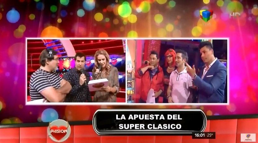 Hacer algún tipo de apuesta antes de un superclásico entre Boca y River ya se convirtió en una costumbre en Pasión de Sábado. Sea un partido amistoso u oficial, los integrantes del programa, llámense conductores, productores y demás, suelen poner en juego un reto que deberá ser cumplido por los derrotados. Así, a un día de que Millonarios y Xeneizes se enfrenten por el torneo argentino, el duelo quedó establecido. Con Marcela Baños y Lisandro Carret como las caras visible de los hinchas de River; y Rosita, Pablo Serantoni y Alejandro Beltzer haciendo lo propio por el lado de Boca, la idea es que aquellos que pierdan la apuesta deberán "representar el tema musical 'Saca la mano Antonio', de Las Primas", de acuerdo con el comunicado leído en el programa. El desafío incluye vestuario y coreografía. Hasta el momento, vale recordarlo, son los de Boca quienes generalmente terminan "pagando" la apuesta. Sin embargo, con la llegada del mellizo Guillermo Barros Schelotto como entrenador, confían en revertir el historial.