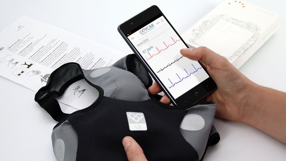 Un equipo de investigadores españoles desarrolló Copcar, un sistema que se basa en ropa con sensores y una aplicación móvil que se conecta con un centro de datos que interpreta la actividad cardíaca y avisa en caso de notar los síntomas de un infarto.