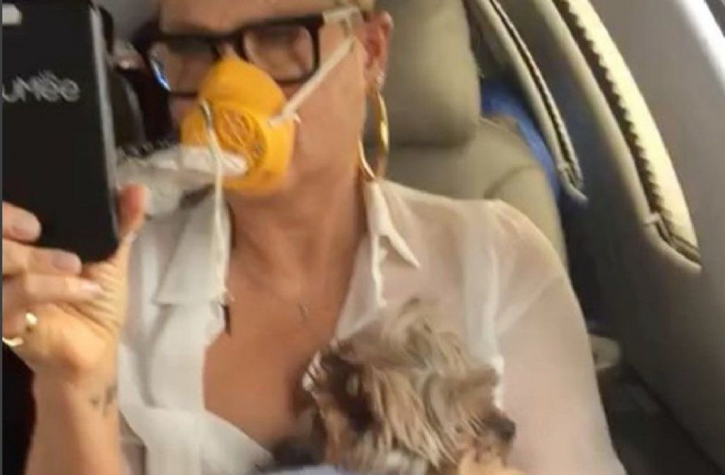 La cantante compartió un video a través de su cuenta oficial de Instagram en la que se la ve a bordo de la aeronave utilizando una mascarilla de oxígeno.