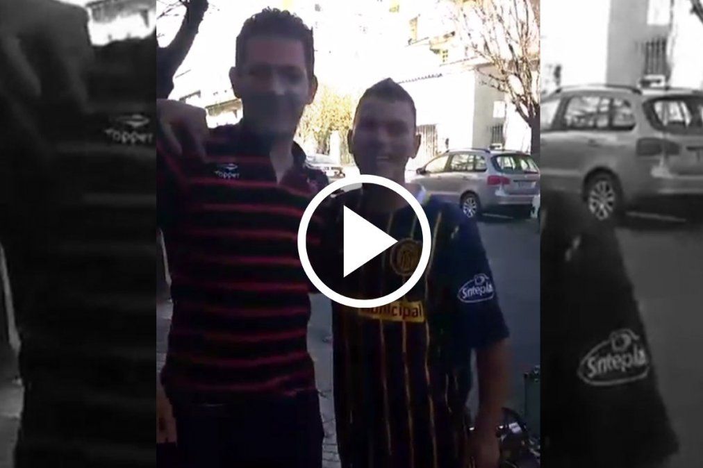 Uno vestido de rojinegro y el otro de auriazul, se encontraron con el notero, quien les informó en el lugar que debían intercambiar sus camisetas para obtener el premio. Por segundos, cada uno accedió a ponerse la remera de su equipo rival y todos estallaron en sonrisas.