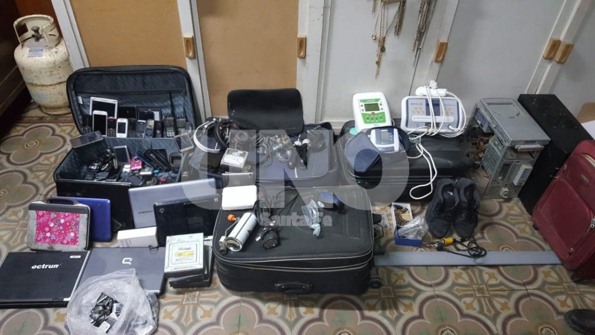 También hallaron controles remotos para alarmas de viviendas, llaves de ingreso de propiedades, computadoras, cámaras de foto, posnet de celulares y un aparato registrador de firmas, como así también elementos utilizados para la medicina.