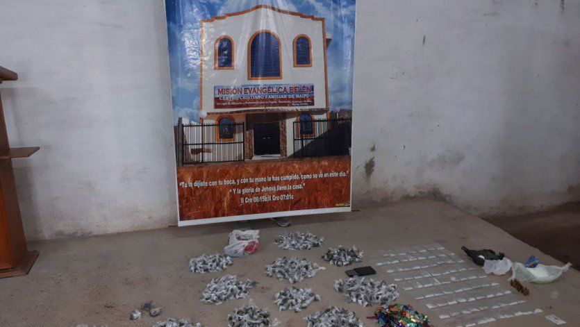 Cuando los policías irrumpieron en la iglesia evangélica hallaron 536 gramos de cocaína y 2.216 de marihuana, todo fraccionado en pequeñas dosis para el narcomenudeo. Los estupefacientes estaban ocultos debajo del atril. También hallaron 14 municiones de 9 milímetros.