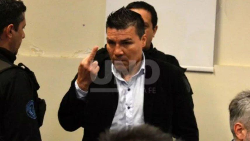 El juicio oral y público empezó cerca de las 8 en los tribunales de la capital provincial, y Baldomir ingresó a la sala de audiencias señalando a los periodistas y haciendo el gesto de "fuck you".