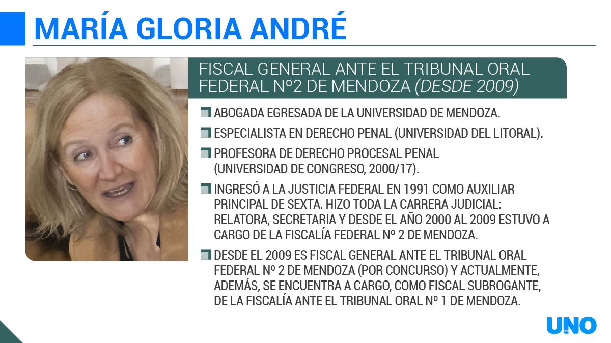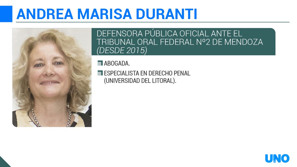 Junto a él está su abogada, la defensora pública oficial Andrea Marisa Duranti (representante de los defensores en la Asociación de Magistrados y Funcionarios de la Justicia Nacional). A su lado, la defensora coadyuvante Cecilia Alfano. Frente a ellas hay otras dos mujeres, las encargadas de la acusación ante el tribunal. Son la fiscal general María Gloria André y la auxiliar fiscal María Eugenia Abihaggle.