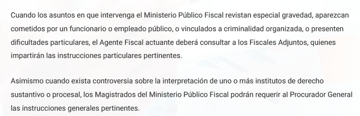 Así lo permite el artículo 24 de la Ley 8008 del Ministerio Público Fiscal cuando exista "controversia sobre la interpretación" entre los dos fiscales inferiores.