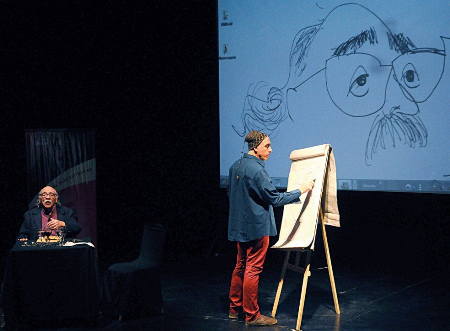 El domingo último, ante una sala colmada, el ilustrador porteño Rep cerró las actividades, dibujando y entrevistando en vivo a Rodolfo Braceli, escritor y periodista a quien estuvo dedicada la feria.