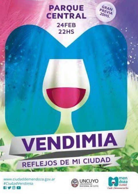 La Vendimia de la Municipalidad de Mendoza se celebrará el viernes 24 de febrero en el Parque Central, con una previa que comenzará a las 20.