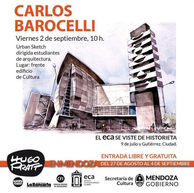 A las 10 Barocelli Urban Sketcher. Dirigido a estudiantes de arquitectura. En la Secretaría de Cultura (España y Gutiérrez, Mendoza).