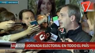 Roberto Righi y Luis Bömh fueron los primeros dirigentes del justicialismo en llegar hasta el búnker de Somos Mendoza dispuesto en Mod Hotels, ubicado en la calle Federico Moreno, y pidieron esperar hasta que estén los primeros resultados oficiales.