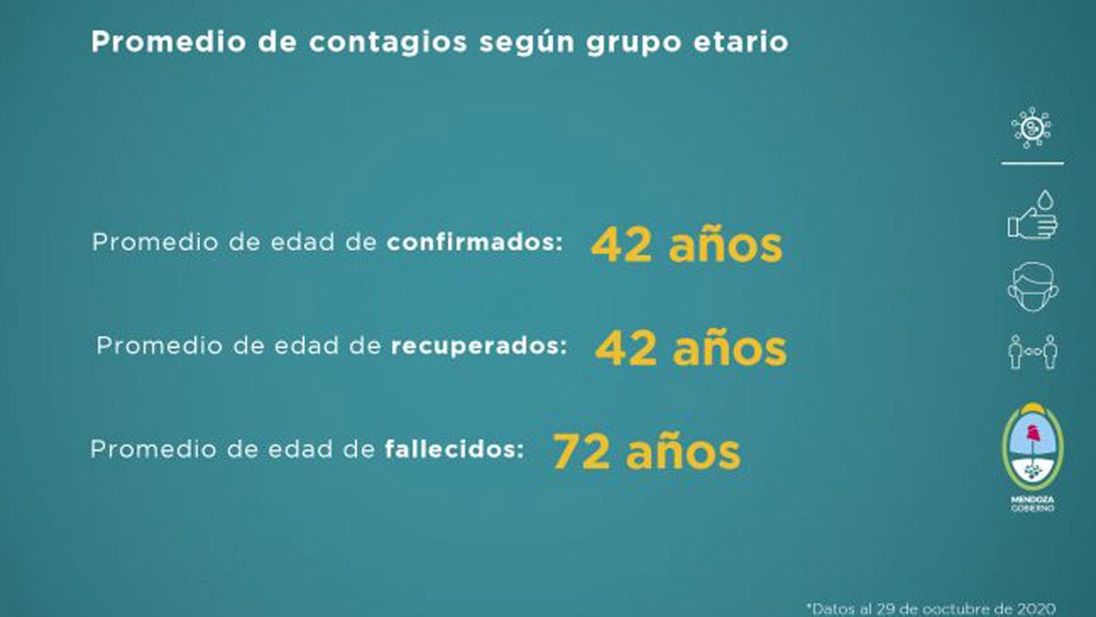 La franja de los más jóvenes continúa siendo el grupo etario que más contagios registra. Por lo general, este sector transita la enfermedad con síntomas leves. El promedio de edad de recuperados es de 42 años, de fallecidos 72 años y de confirmados 41 años.