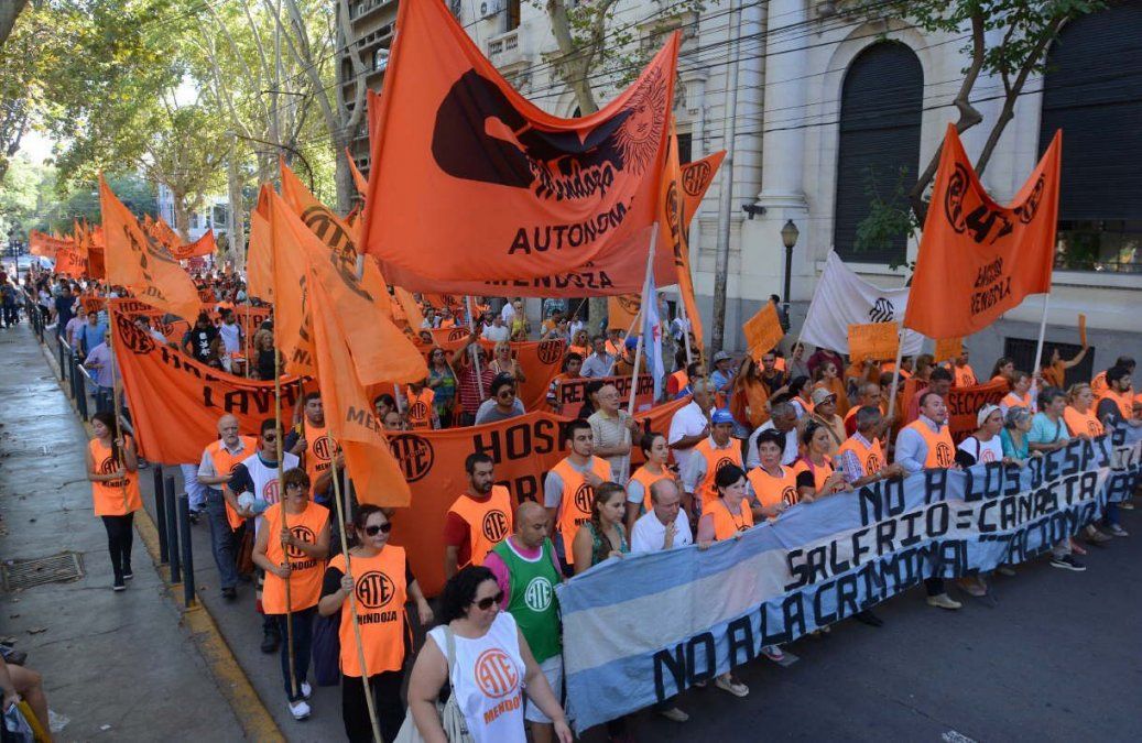 La Asociación de Trabajadores del Estado realizó este jueves una jornada de asambleas y movilización a la Casa de Gobierno , en reclamo de la "reapertura de paritarias" y la reincorporación de los trabajadores públicos despedidos. Pasadas las 10 de la mañana los estatales se concentraron en el cruce de Colón y San Martín para movilizarse a la Casa de Gobierno previo paso por la Legislatura. La marcha generó demoras y trastornos en el centro mendocino y los automovilistas debieron tomar caminos alternativos para evitar el colapso durante el mediodía del jueves.La actividad en varias dependencias públicas se vio afectada por las asambleas que paralizaron la atención al público.