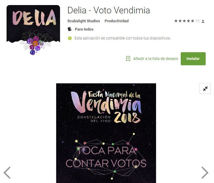 Para descargar esta app, disponible sólo para Android, hay que ir a Google Play y buscar Delia o Delia Vendimia y aparece el icono de la imagen de la Fiesta Nacional de la Vendimia 2018, que es el que hoy se está utilizando. Se toca ese icono y comienza a descargarse, se instala y ya se puede utilizar. El funcionamiento es muy fácil. Al acceder a la aplicación, una vez abierta vemos el menú con información de lo que es la aplicación y otro para empezar a usarla. Una vez que se ingresa a ese menú están las fotos de todas las reinas, sus nombres y arriba una "burbujita" con el número de votos que les han dado.