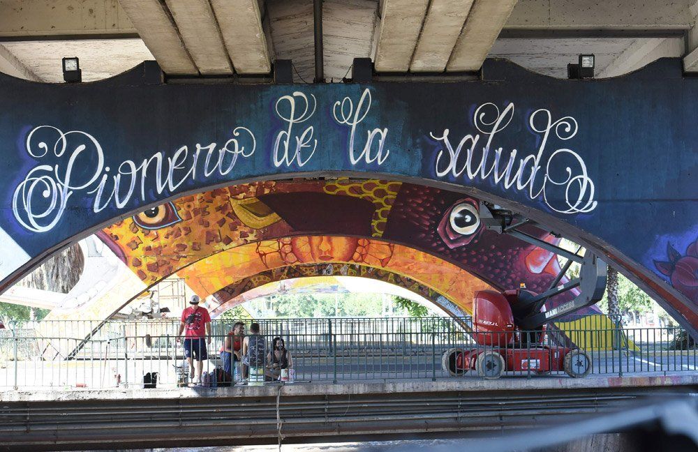 Los artistas contaron que la primera pincelada la dieron hace dos semanas y que el desafío fue y es grande, porque si bien son más de 30 los convocados -entre artistas que trabajan en soledad y los que lo hacen en equipo- son ocho arcos que deben ir pintados al frente y al dorso.