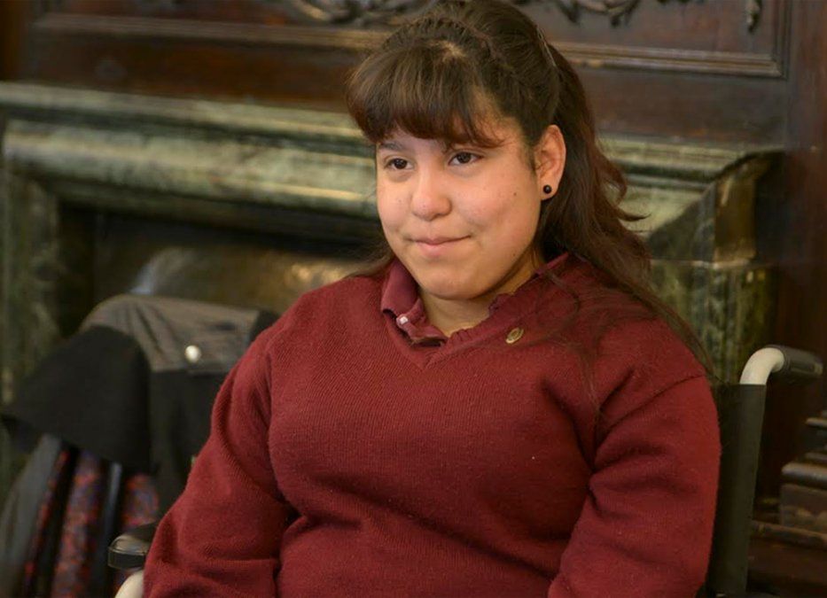 El salón principal de la legislatura de Mendoza estaba colmado por los compañeros de escuela de Candela, ellos son los que diariamente la ayudan en su sueño: quiere prepararse para estudiar psicología en la universidad y viajar por todo el mundo.