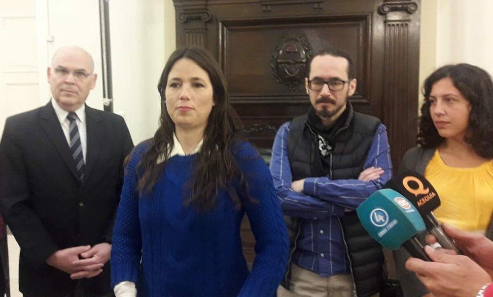 La referente del FIT estuvo acompañada por el abogado constitucionalista Carlos Lombardi y Sebastían Henríquez, secretario general del SUTE.