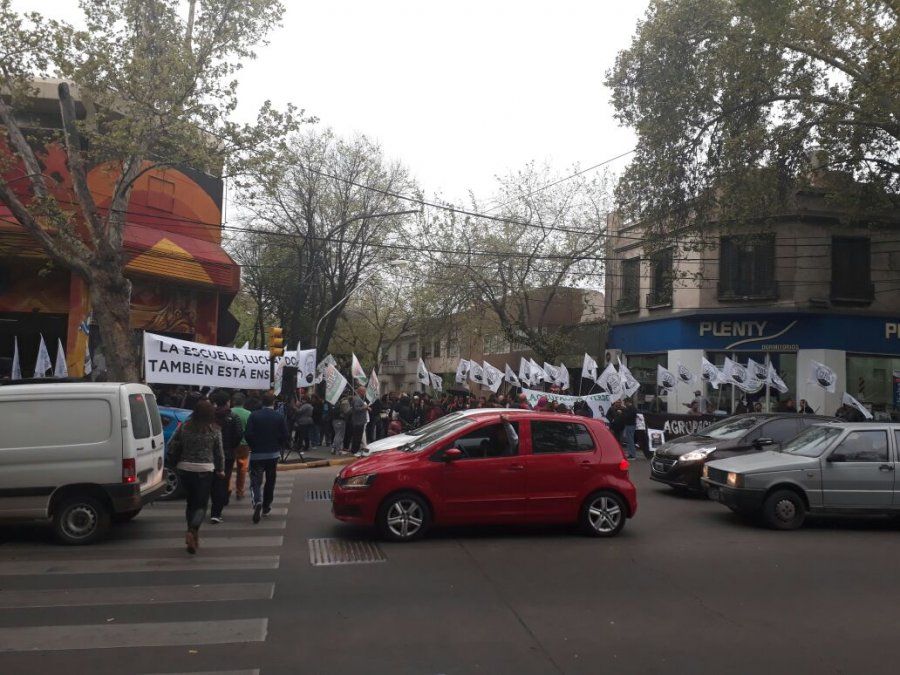 El gremio docente cortó el tránsito en pleno centro de Mendoza en reclamo de la apertura de paritarias para negociar los salarios de los educadores. El corte comenzó cerca de las 11 en calle Rondeau hacia el Este, a la altura de calle San Martín, de Capital, donde funciona la Subsecretaría de Trabajo.Roberto Garcés, prosecretario gremial de Educación Media y Superior del SUTE, dijo a Radio Nihuil: "Estamos solicitando al Gobierno la reapertura de paritarias para empezar a discutir los salarios docentes y otras condiciones"."El Gobierno viene hablando de diálogo, pero a la hora de sentarse con los docentes no lo hace", expresó Garcés.Además dijo que algunos gremios acordaron abrir paritarias después de las elecciones, pero el SUTE insiste en que estas negociaciones ya deberían estar abiertas. Este corte complicó el tránsito por lo que los micros que toman Rondeau debieron ser desviados por calle San Martín. El corte estaba previsto hasta el mediodía y luego se seguirá con el plan de lucha acordado en el plenario extraordinario realizado la semana pasada.