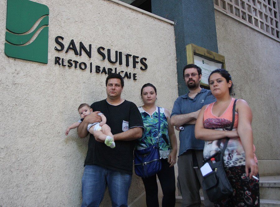 En la puerta, mientras Leiva y su familia veían qué hacer, con las valijas en la mano, una protesta gremial contra la empresa San Suites denunciaba una presunta estafa contra los trabajadores de la firma.