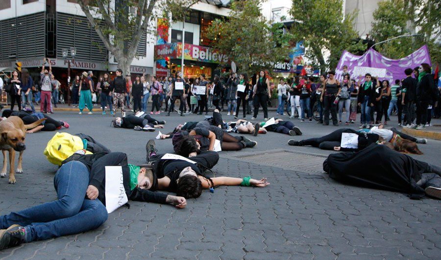 Convocadas por las redes sociales, unas 300 personas se movilizaron en pleno centro y un grupo de mujeres realizó representaciones relacionadas con la violencia de género, tirándose en la calle.