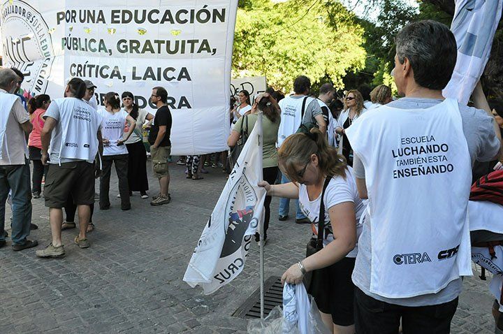 El parto y movilización convocados por el Sindicato Unido de Trabajadores de la Educación (SUTE) y CTERA comenzó cerca de las 18 en el kilómetro cero.