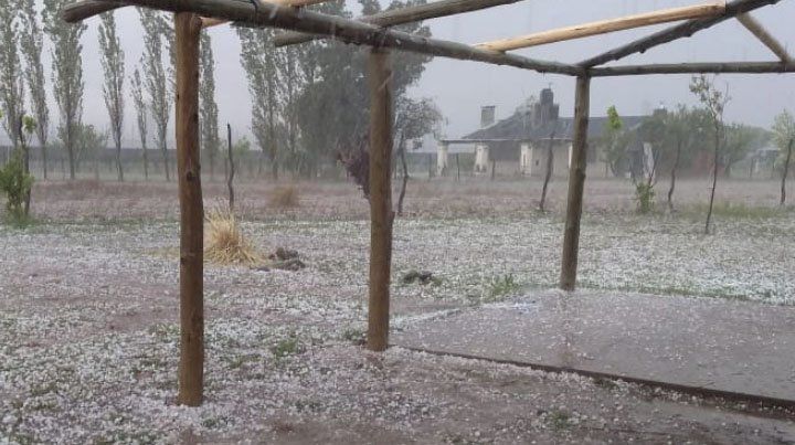 Una tormenta de granizo afectó zonas productivas de San Rafael y la ciudad del departamento. La tormenta llegó a El Carrizal (Luján de Cuyo) y se desplazó hacia el Este, donde se descargó granizo en áreas cultivadas de Santa Rosa. Hay alerta para el Gran Mendoza.