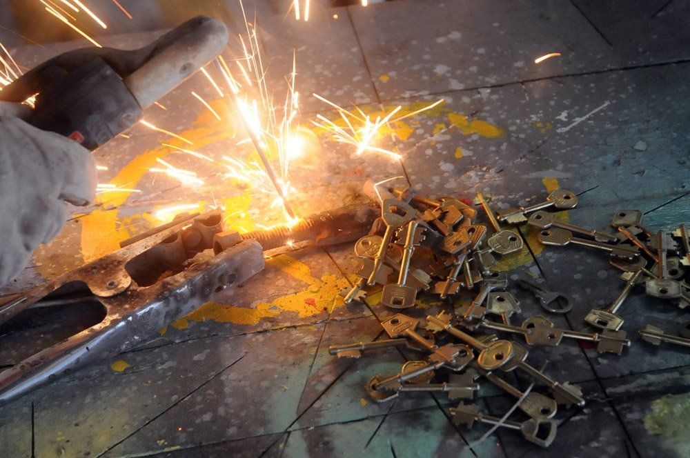 Ayer el escultor ya estaba haciendo las primeras pruebas con las llaves que le aportaron los alumnos de algunas escuelas secundarias del departamento.