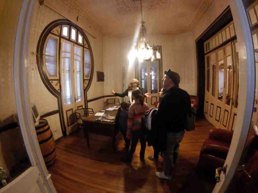 "Pasamos ayer por aquí en otra excursión y vi las casas... Y quisimos volver", dice, después de cruzar el imponente ingreso a la casona de Bautista Gerónimo Gargantini. Liliana Cabral, que es la guía del lugar hace 10 años, llevará a pasar al grupito por habitaciones, galerías y escalinatas de mármol durante la próxima media hora. Ese tiempo sólo será para visitar la casa de este italiano nacido en Lugano, pero no incluirá un caserón igual de grande y suntuoso ubicado a 30 metros de aquí, el de Juan Giol, socio del primero. Esa casona está en riesgo de derrumbe y se prohíbe el ingreso.