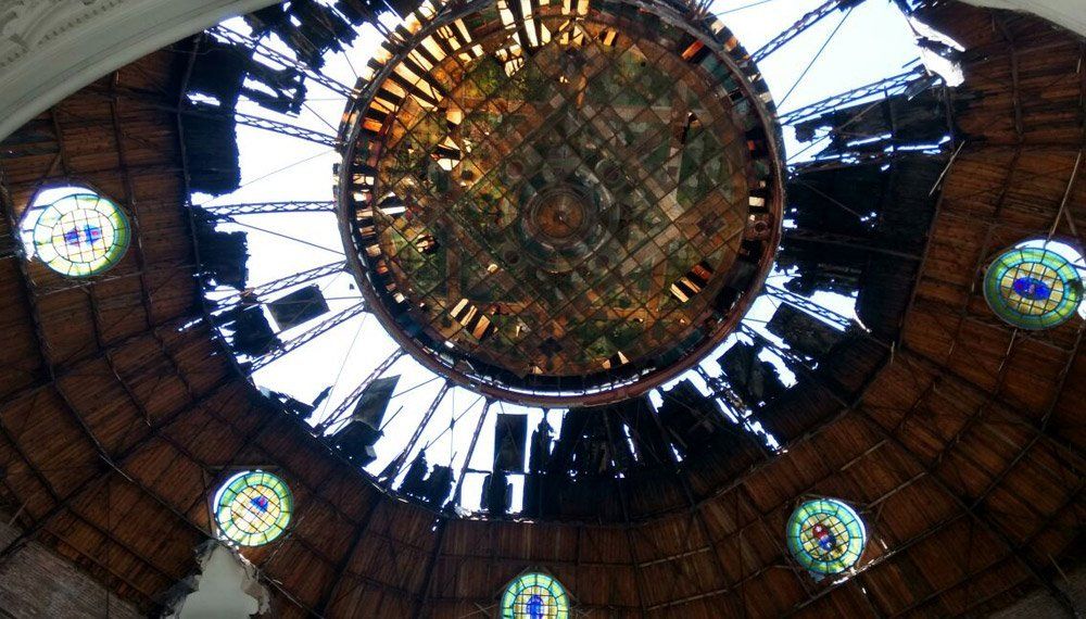 La cúpula está montada sobre una estructura de hierro, con un óculo central donde están sostenidos todos los parantes, y entre uno y otro están las ocho ventanas con sus respectivos vitrales. Esa estructura está cubierta por madera y una placa de metal por arriba. Desde abajo, la terminación está realizada en yeso. Por eso, muchos de los que estuvieron combatiendo el fuego calculan que los trabajos para colocar membrana metálica con soplete aumentaron considerablemente la temperatura de la madera que está encerrada entre el yeso y la placa, por lo que empezó el proceso de combustión.
