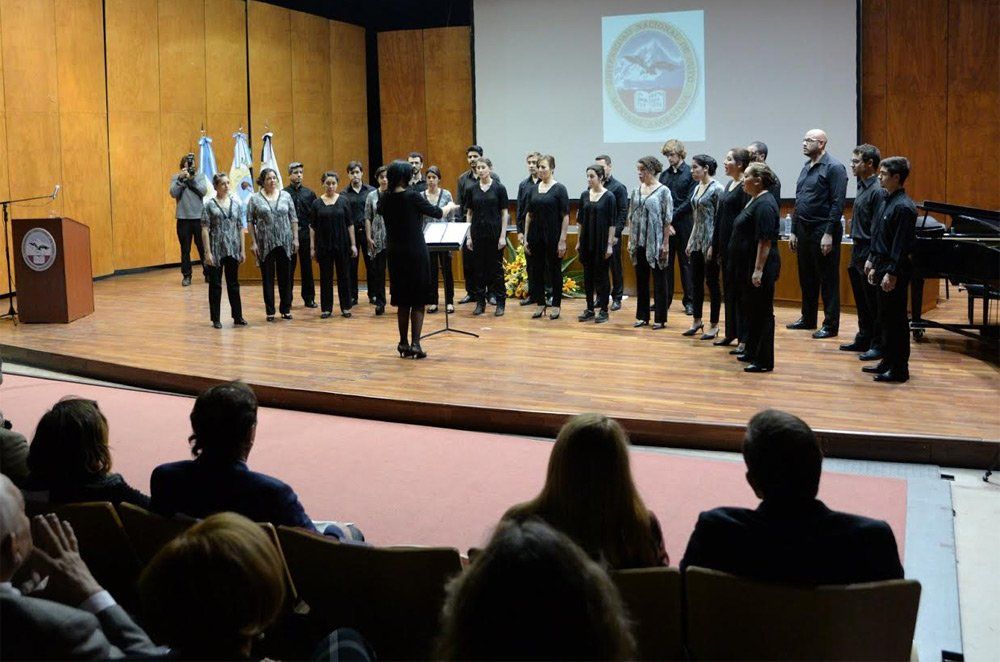 Los festejos comenzaron con la actuación del Coro Universitario de Mendoza (CUM) que deleitó al público con la interpretación de Magnificat de Alberto Grau y la Tangata de Astor Piazzolla en versión coral de Silvana Vallesi.